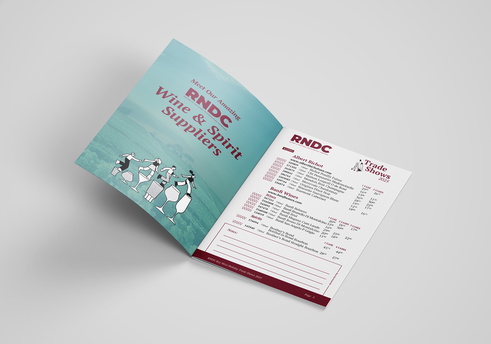This 28-page program booklet for the Trade Shows turns dense event information into a clean, engaging, and easy-to-navigate experience. With cohesive branding, custom illustrations, and thoughtful layouts, it showcases suppliers and featured products, while also including space for tasting notes and order references. The result is a piece that functions as both a practical tool during the event and a polished keepsake afterward.